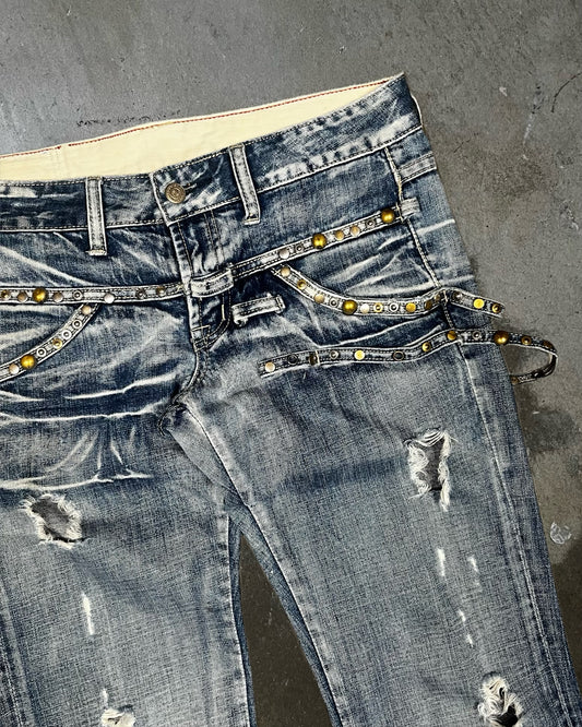 Tornado Mart Studded & Distressed Flared Jeans